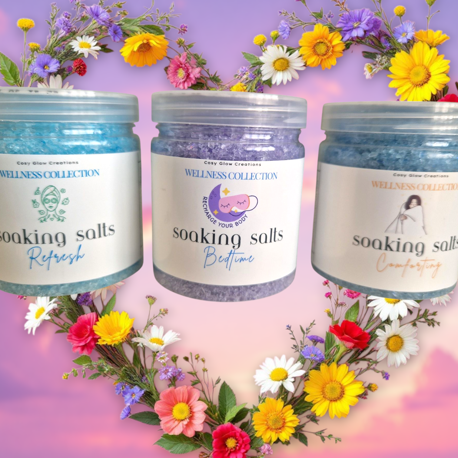 Indulge in the ultimate relaxation experience with our Wellness Trio Soaking Salts. Scientifically formulated with epsom salts and fragrances, our comforting, refreshing, and bedtime scents are proven to improve feelings of wellbeing. The perfect gift for yourself or loved ones, these salts come in a natural jute gift bag. Sweet dreams await with our bedtime scent.