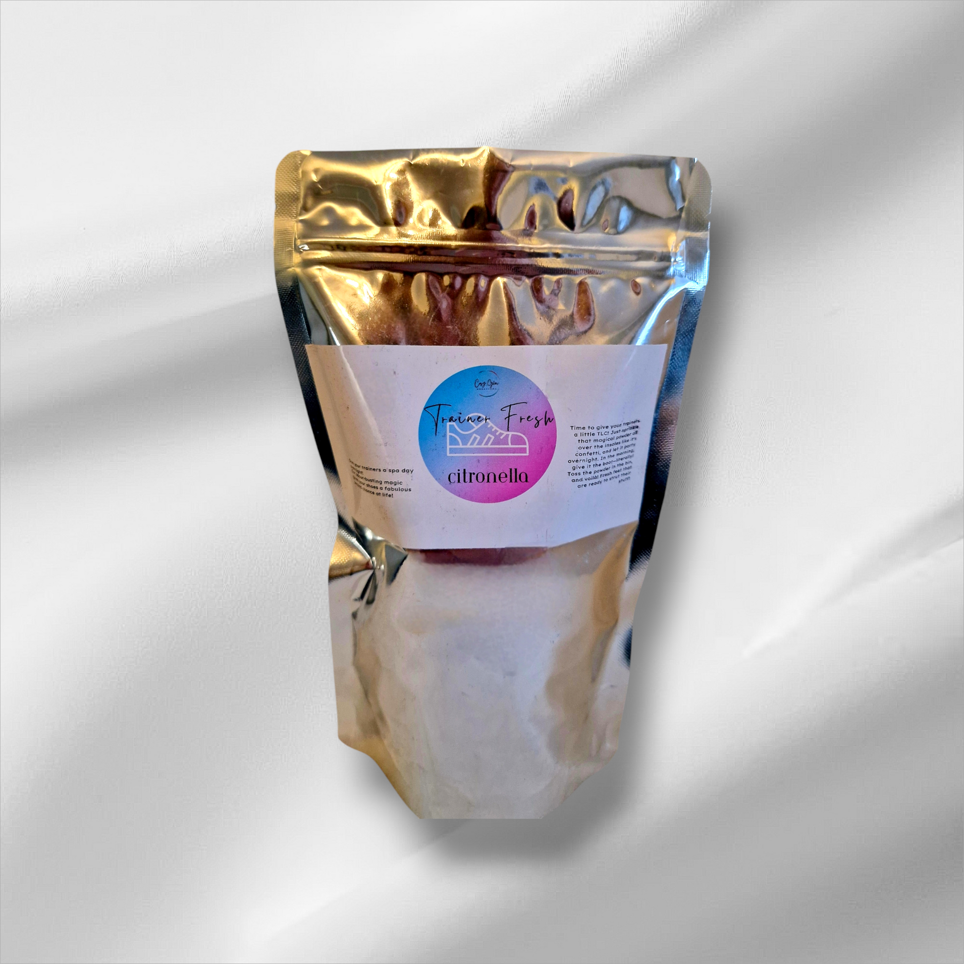 Trainer Fresh is the perfect solution for keeping your trainers smelling fresh and clean. Simply sprinkle this scented powder into your trainers to neutralise odours and enjoy long-lasting freshness. Say goodbye to unpleasant smells and hello to comfortable, odour-free feet with Trainer Fresh.